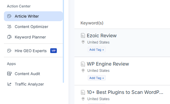What Scalenut has that the competitors don't is its keyword clustering. Its AI groups related keywords into topic clusters automatically, which helps you build the topical authority without mapping your content calendar.
