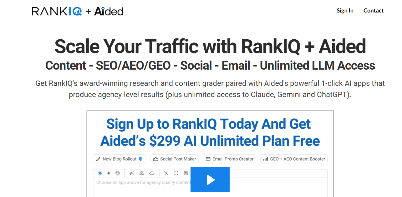 Best for: Teams that want content creation, optimization, and AI visibility tracking in one platform.
