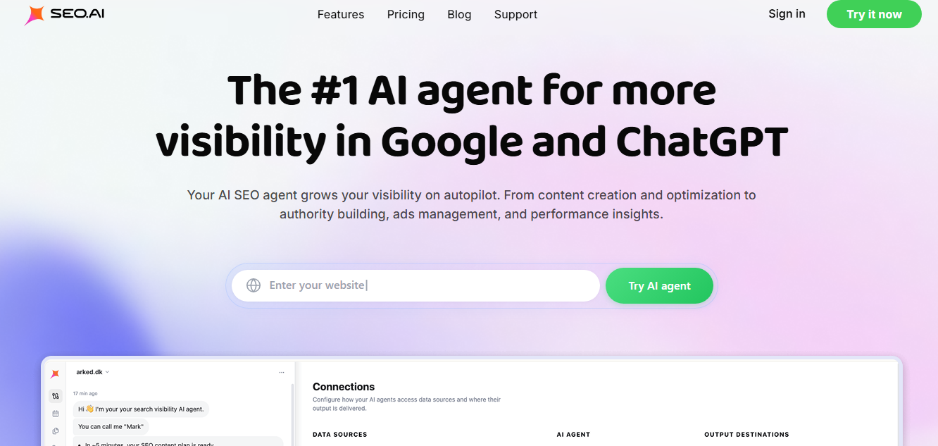 Best for: Small businesses and content teams that want a simple AI SEO tool without a steep learning curve.