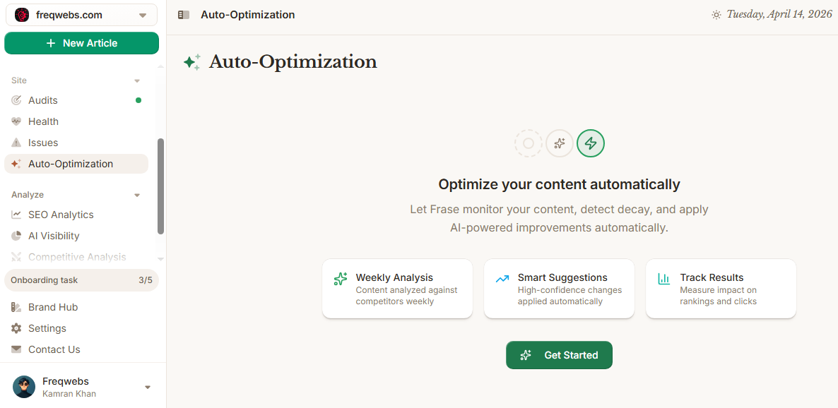 Frase is a tool I'm gonna recommend if you are spending too much time on research before writing. You just need to put in a keyword, and Frase automatically pulls the top-ranking pages, extracts the headings, key points, and questions people ask related to the topic, and gives you a clean brief to work from.